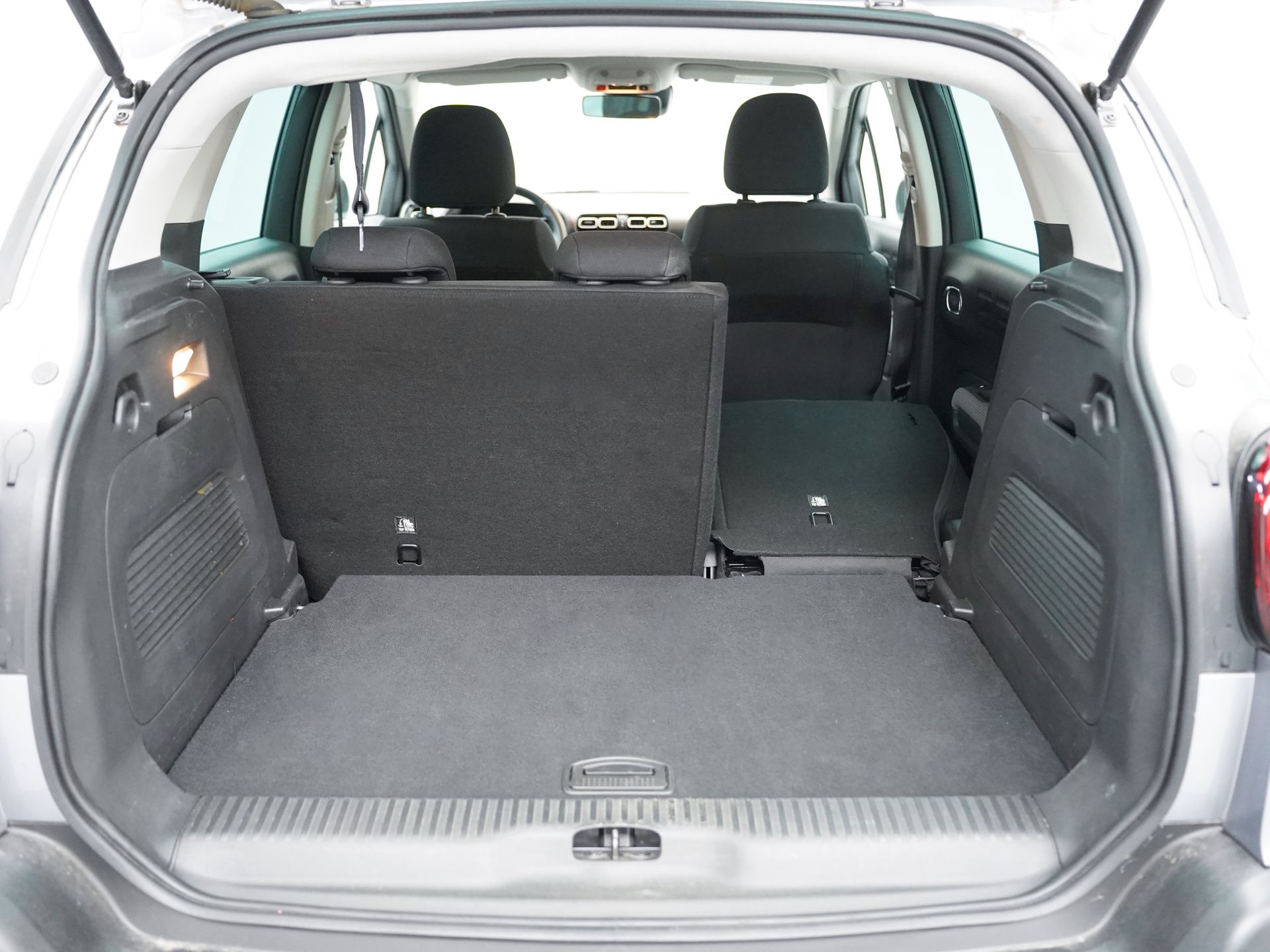 - Asientos traseros de tres plazas de tipo banco partido de orientación delantera abatibles en el suelo con banqueta fija, respaldo abatible asimétrico y comunicado con el maletero