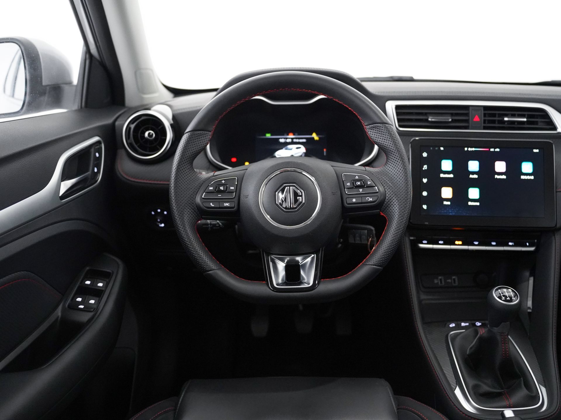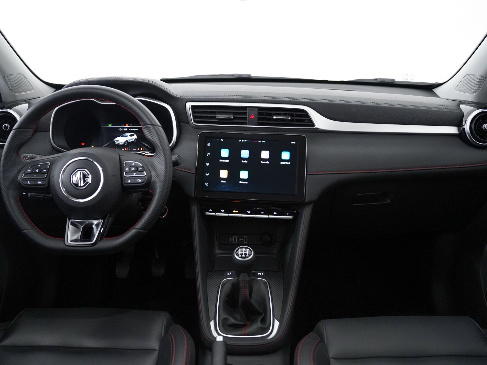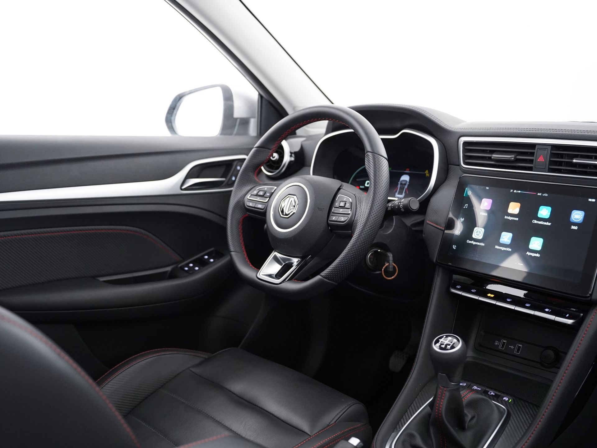 - Acabados de lujo: pomo de la palanca de cambios en símil aluminio, consola central en símil fibra de carbono, puertas en símil aluminio y tablero en símil aluminio