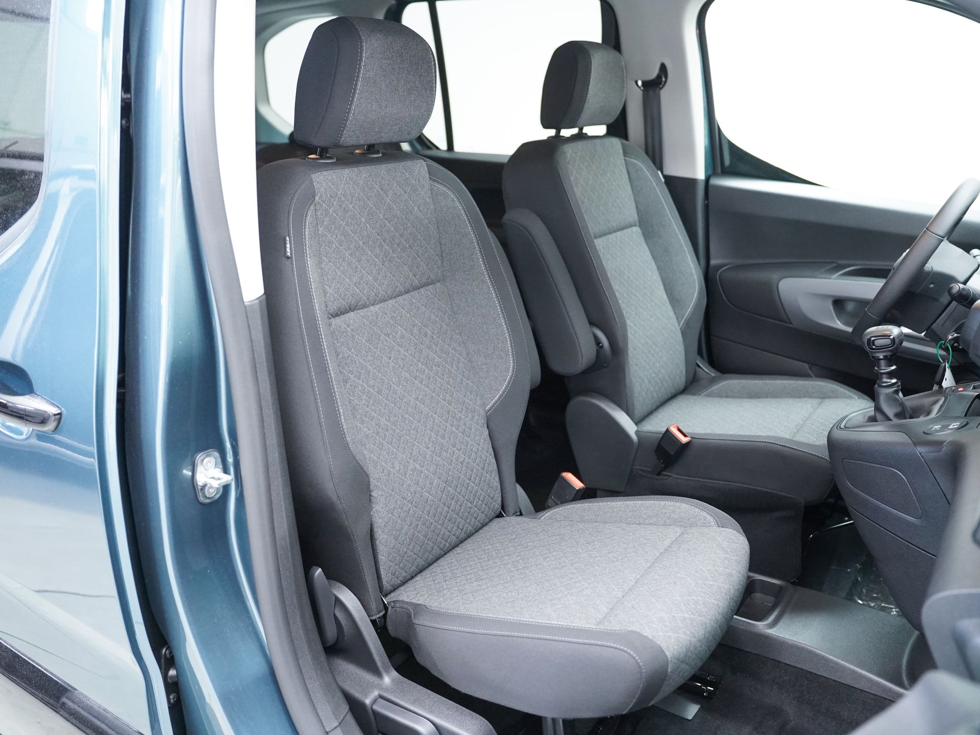 - Asiento delantero del conductor individual, ajuste longitudinal manual, ajuste manual en altura y ajuste lumbar manual ( con mesa en el respaldo del asiento) con ajuste manual del respaldo, asiento delantero del acompañante individual, abatible y ajuste longitudinal manual ( con mesa en el respaldo del asiento) con ajuste manual del respaldo