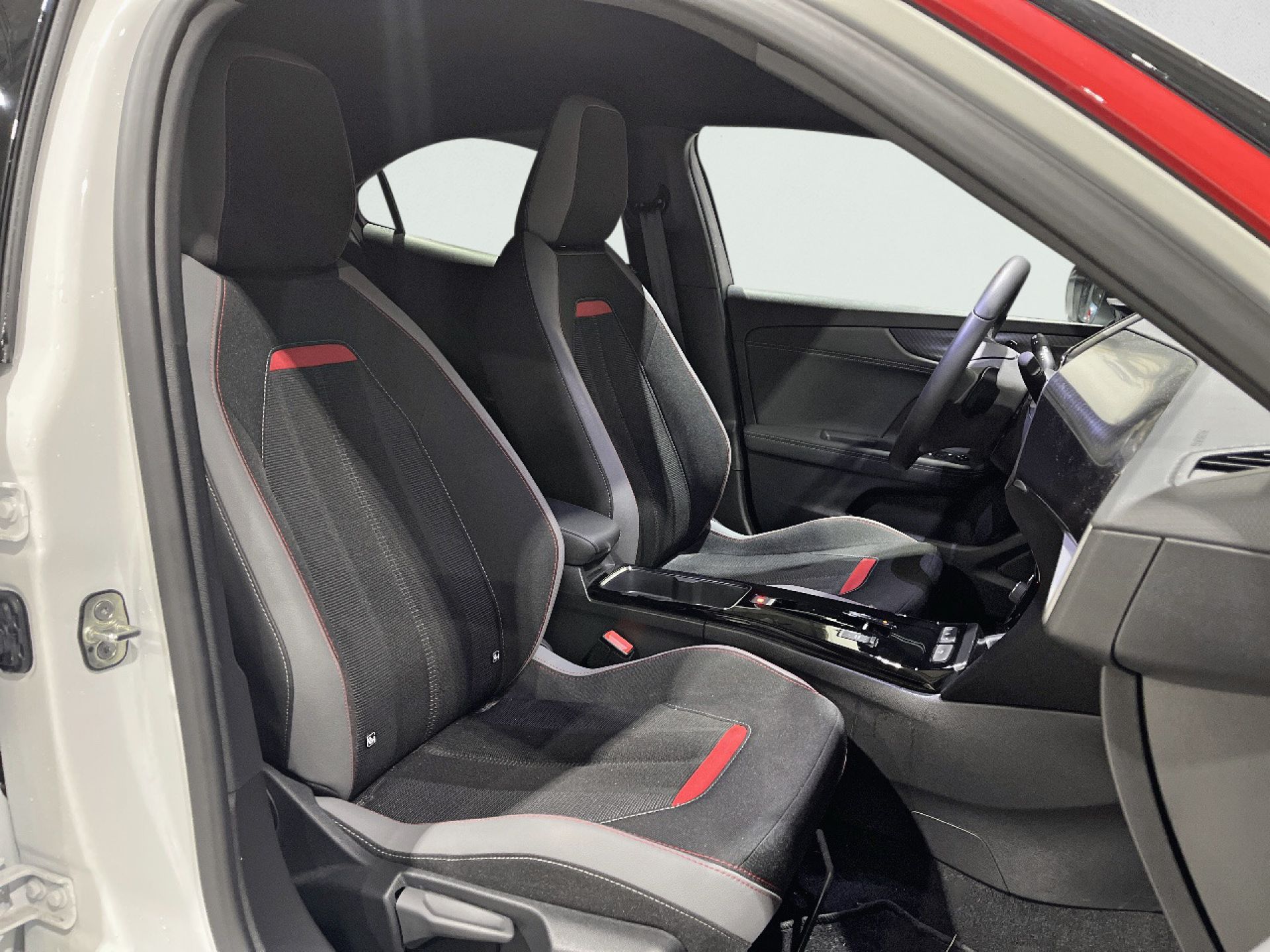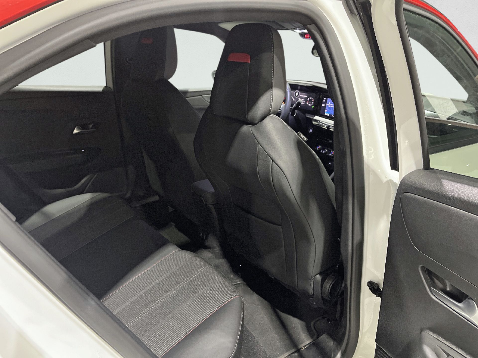 - Asientos de tela (material principal) y de cuero sintético (material secundario)