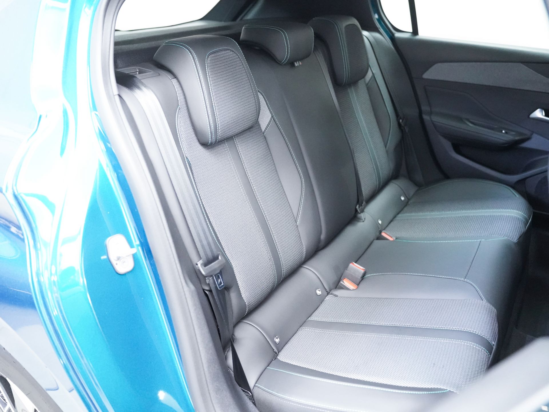 - Asientos de tela (material principal) y de cuero sintético (material secundario)