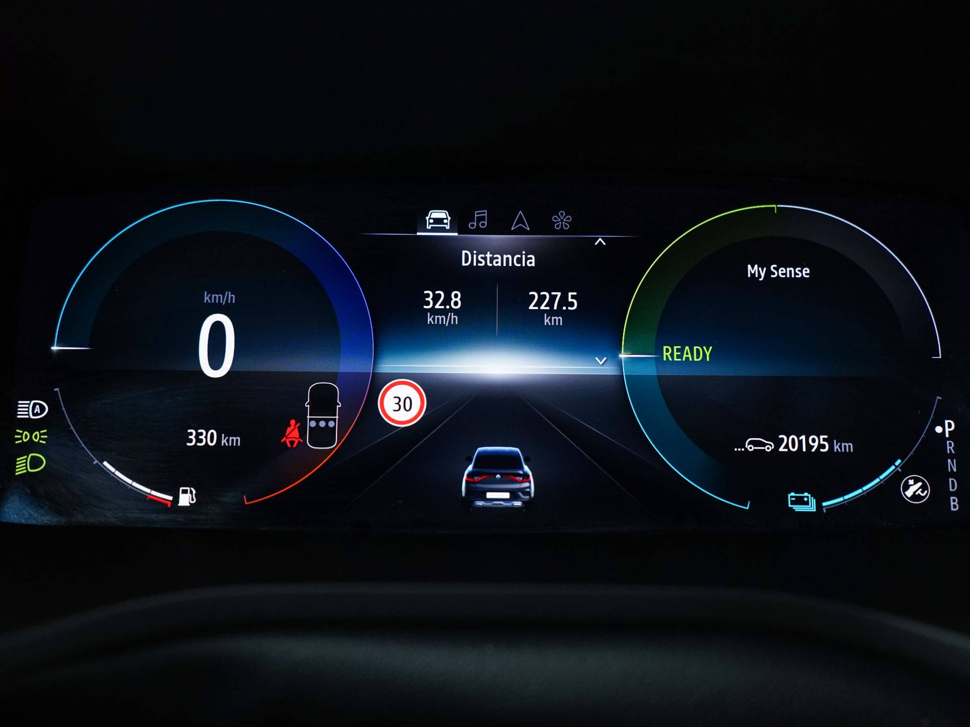- Sistema de alarma de colisión: activa las luces de freno con asistencia de frenado, sistema antiatropello peatones/ciclistas y frenado a baja velocidad de 7 Km/h como mínimo aviso visual/ acústico, funciona por encima de 130 km/h / 78 mph, funciona por encima de 50 km/h / 30 mph y funciona por debajo de 50 km/h / 30 mph