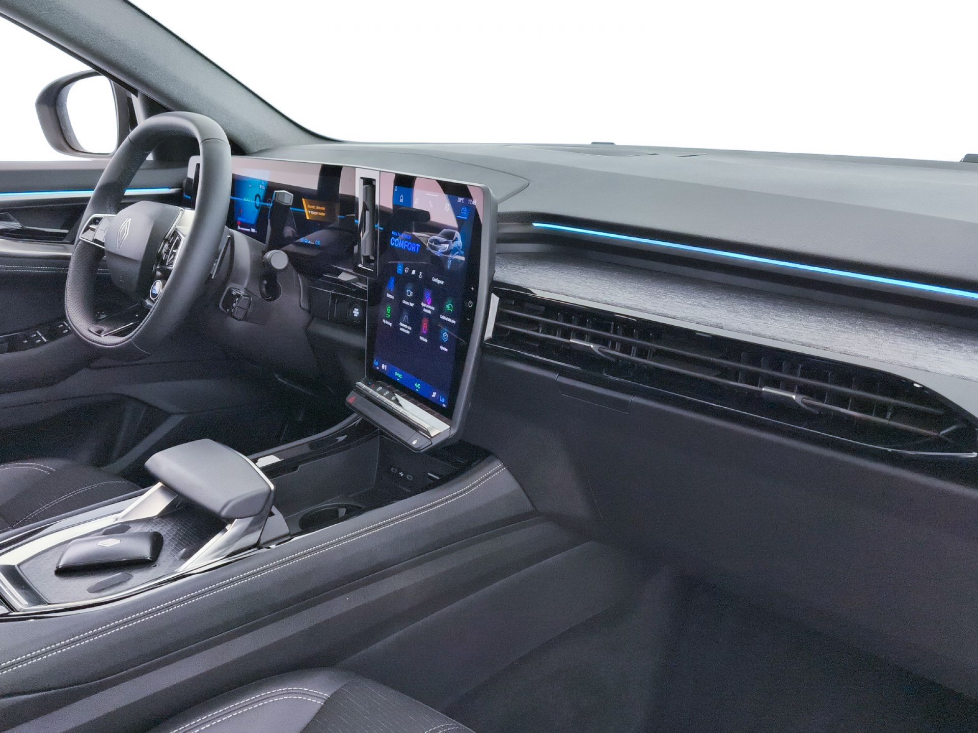 - Acabados de lujo: pomo de la palanca de cambios en símil aluminio, consola central en símil aluminio, puertas en símil aluminio y tablero en madera o símil madera