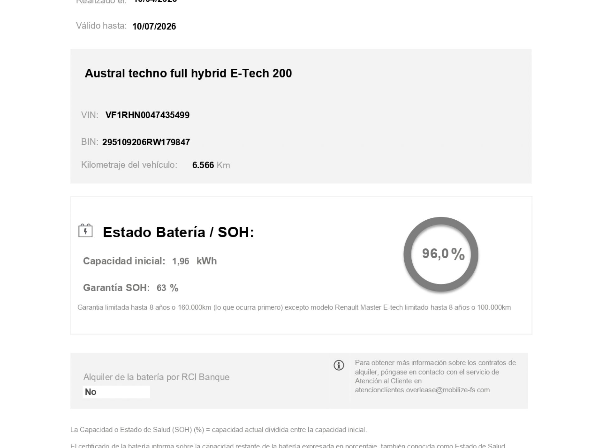 - Batería tipo: iones de litio de 400,0 voltios y 1,70 kw/h 0, 0 y 0,0