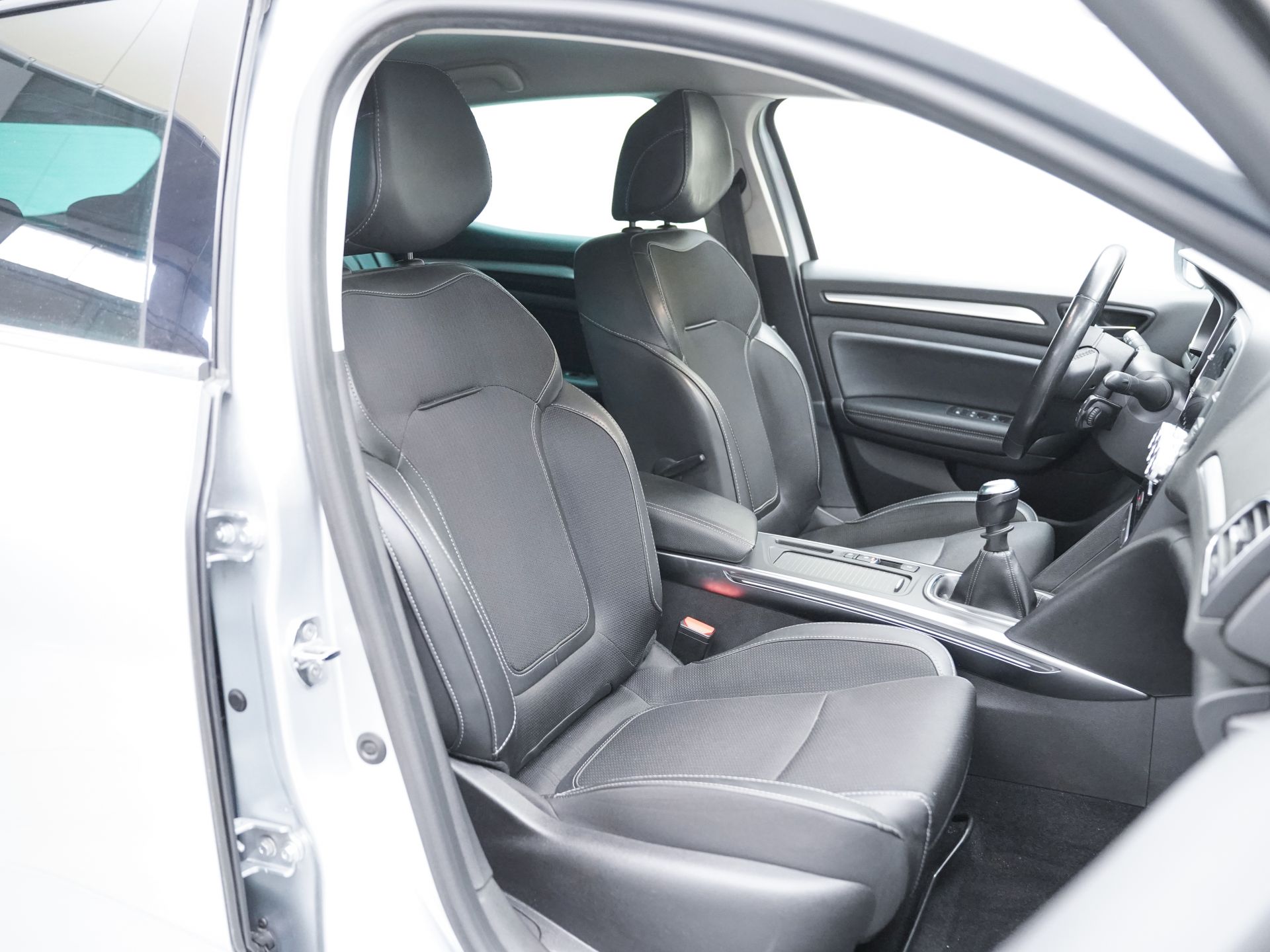 - Asientos de tela (material principal) y de cuero sintético (material secundario)